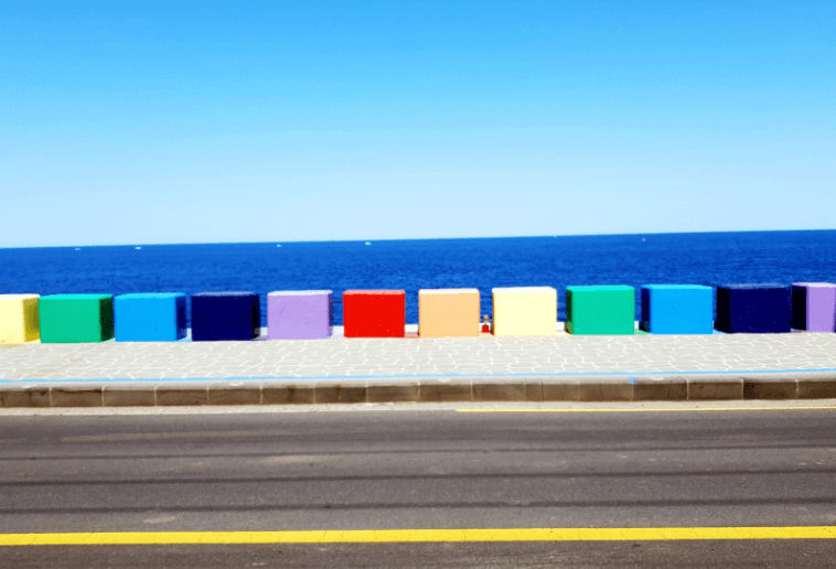 제주도 인증샷 스팟으로 많이 유명한 장소입니다. 해안가를 따라서 무지개색으로 칠해진 돌들이 나란히 이어져 있는데 바다를 배경으로 사진 찍기 아주 좋습니다. 색도 아주 예뻐서 색감도 아주 예쁘게 나옵니다.